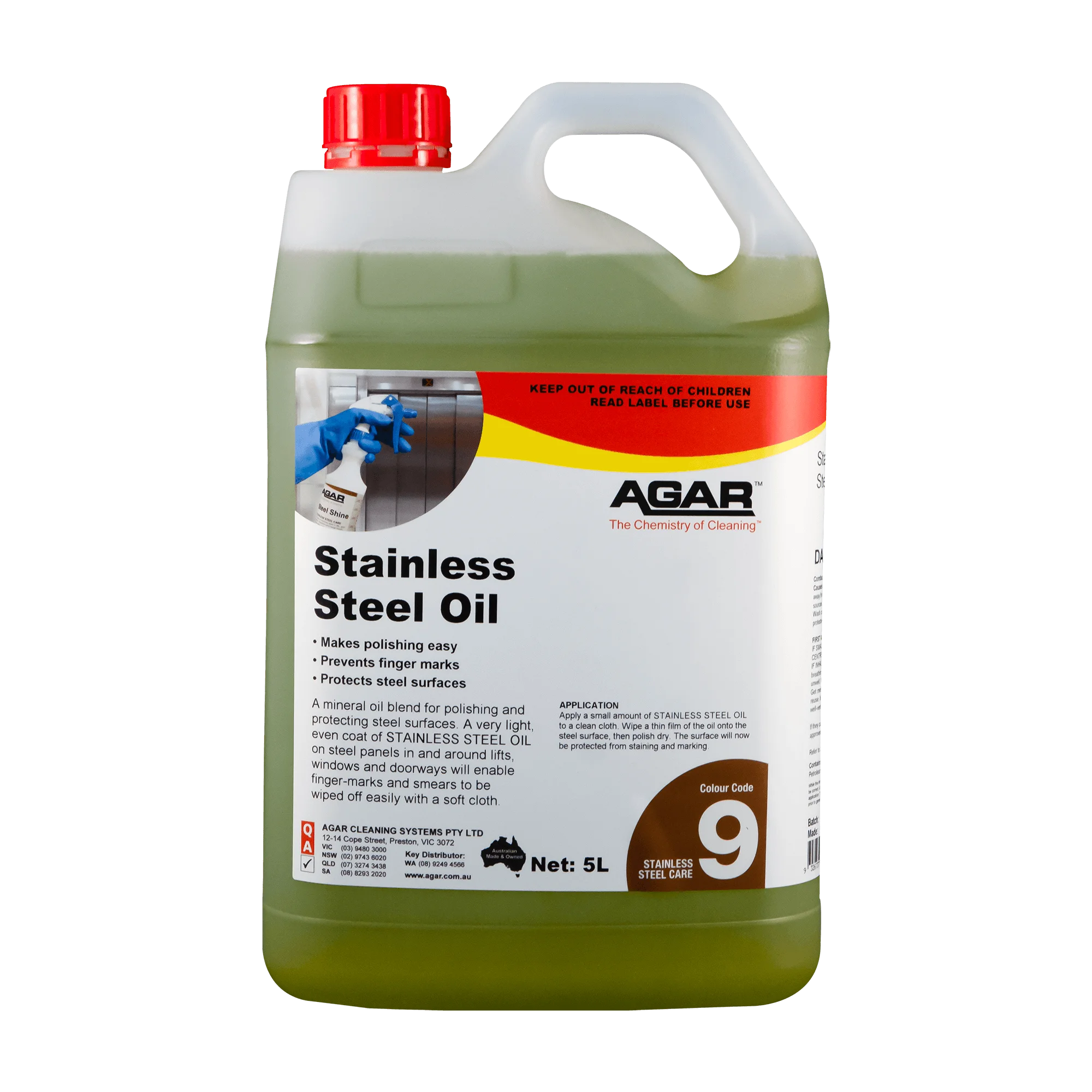Stainless Steel Oil 5L Protect and enhance your stainless steel surfaces with this premium 5-litre oil. Designed to restore shine, prevent fingerprints, and guard against corrosion, it's ideal for kitchen appliances, benchtops, and fixtures. Easy to apply and long-lasting, this versatile cleaner keeps your stainless steel looking pristine and well-maintained.